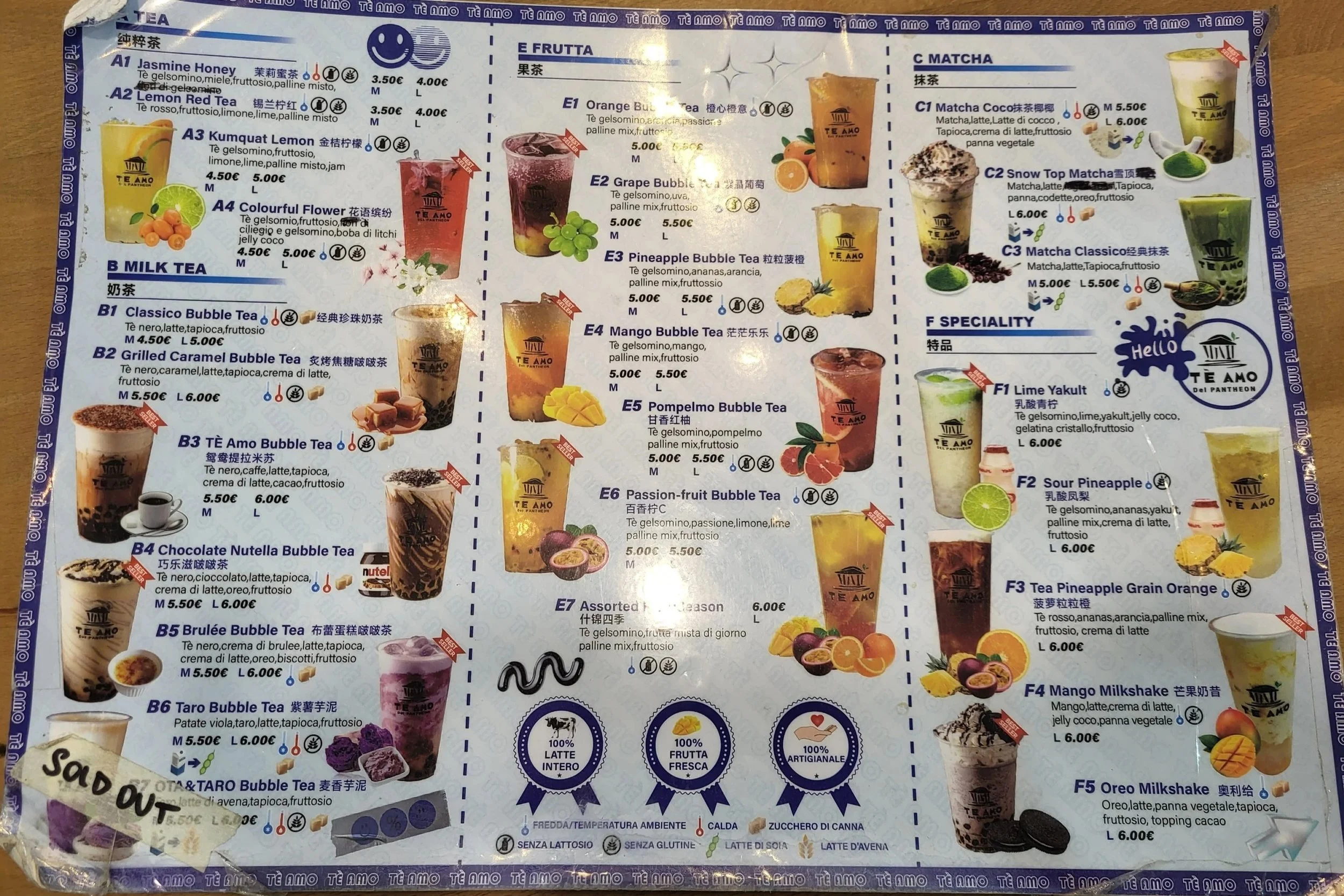 Now listen, this is where we are getting into bubble tea territory, but you know what, it is my list, so I make the rules. Tè Amo is a bubble tea store located on Via di Torre Argentina, close to the Pantheon. It is really focused on take-away, so there is no bathroom, but their drinks are amazing.